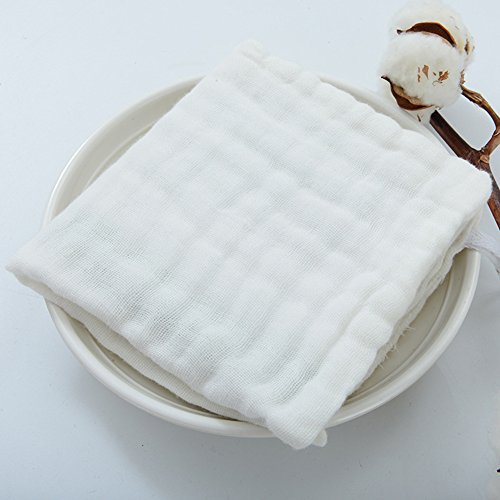 Domybest ガーゼハンカチ ベビー 6重ガーゼ 30 X 30cm タオル 柔らかい ベビーハンカチ 赤ちゃん 沐浴 授乳 出産お祝い (ホワイト)