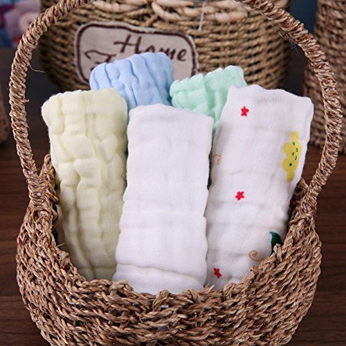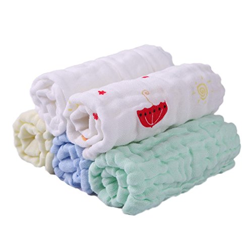 Domybest 赤ちゃん ガーゼ ベビー ハンカチ よだれかけ コットンタオル 5枚セット 5色 柔らかい