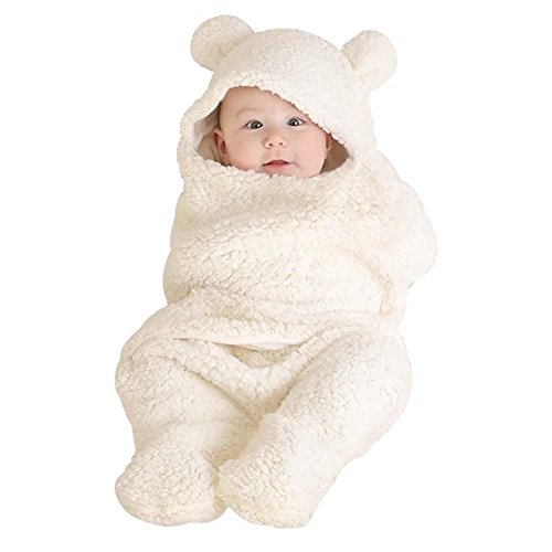 Domybest ベビー布団 寝具 毛布 ブランケット 体拭き 子供 赤ちゃん用 新生児 無地 白 フード付き 足つき 柔らかく かわいい