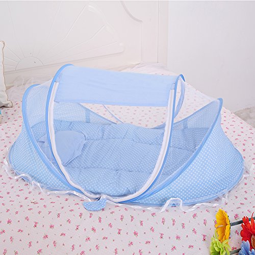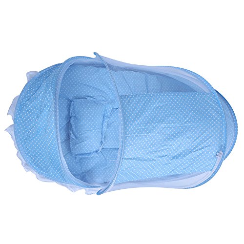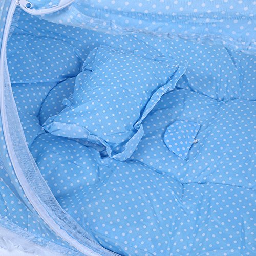 Domybest ベビーベッド 蚊帳 携帯型 折りたたみ式 赤ちゃん 幼児ベッド 蚊対策 虫よけ 夏 綿マットレス 蚊帳ベッド 持ち運びに便利 枕付き 2色選べる (ブルー)