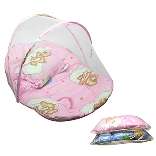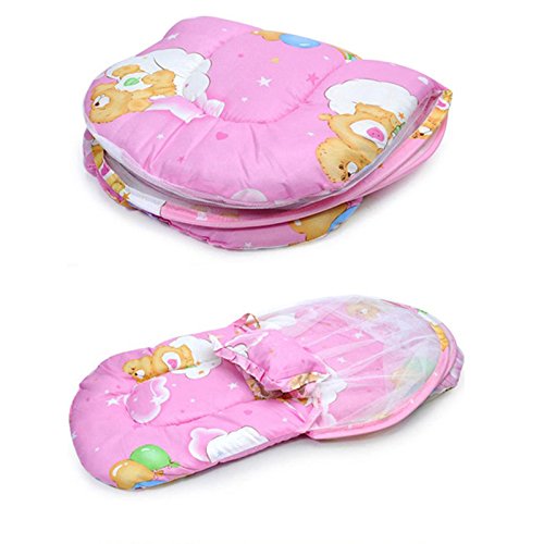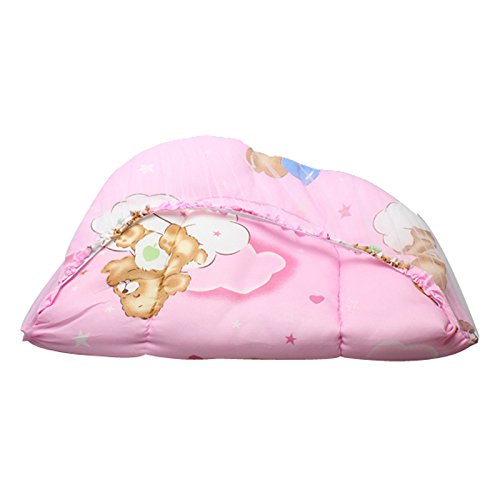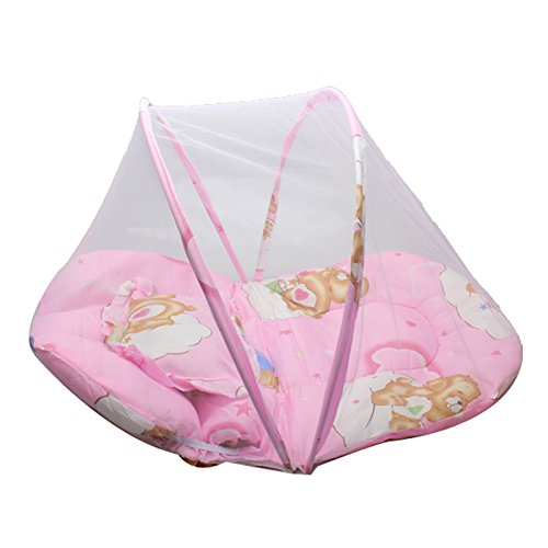 Domybest ベビー用蚊帳 折りたたみ ベビーベッド用蚊帳 蚊対策 虫よけ 夏 綿マットレス 持ち運びに便利 枕付き (ピンク)