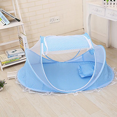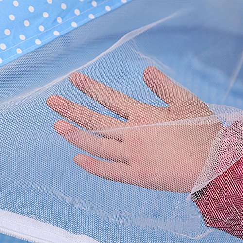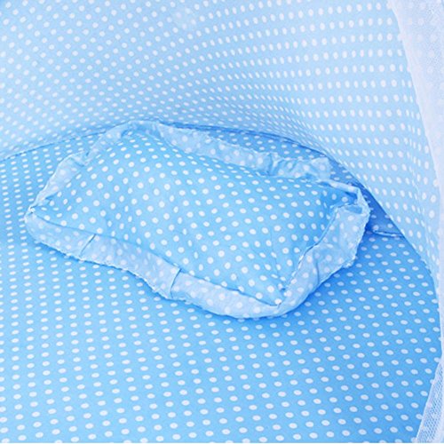 Domybest ベビー蚊帳 枕付き 夏 防蚊対策 虫よけ 折りたたみ式 ワンタッチ 赤ちゃん 幼児 ベッド用品 持ち運び便利 水玉 ブルー