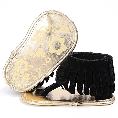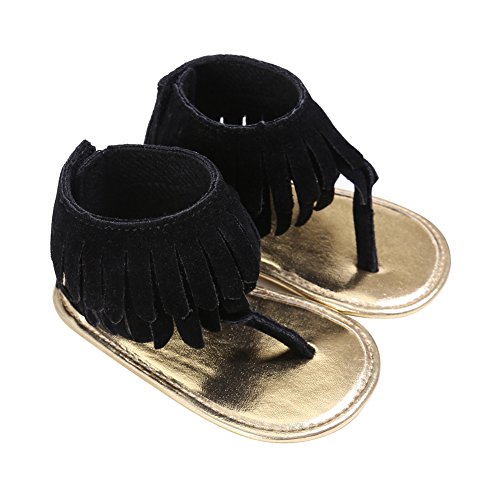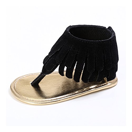 Domybest ベビー サンダル ベビーシューズ ファーストシューズ タッセル 人工PU 女の子 ガールズ キッズ 赤ちゃんシューズ 春 夏 室内履き お出かけ 日常生活 出産お祝いプレゼント 2色選べる (12cm(6-12ヶ月), ブラック)