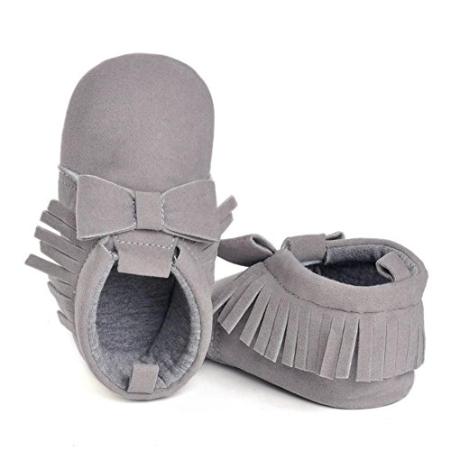 Domybest ベビーシューズ 秋用シューズ 革靴 女の子 キッズ 赤ちゃん 子供 リボン 可愛い 祝い お出かけ 日常生活 3色 12cmグレー