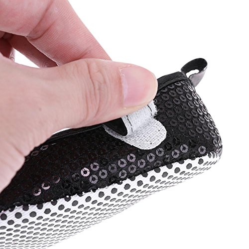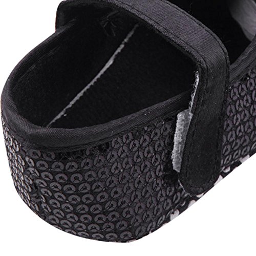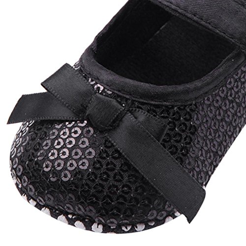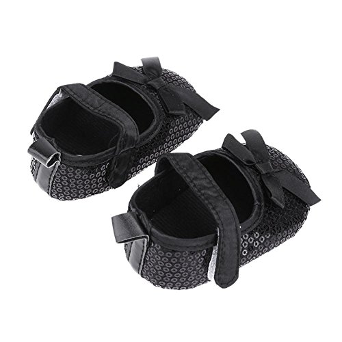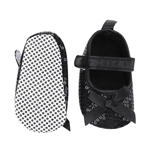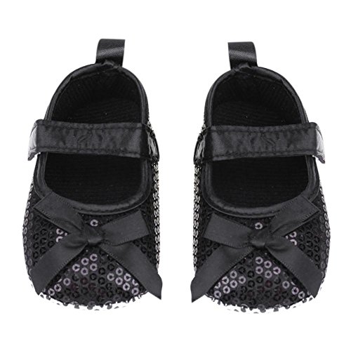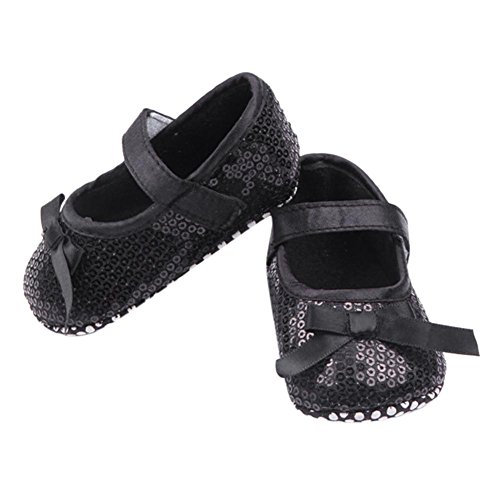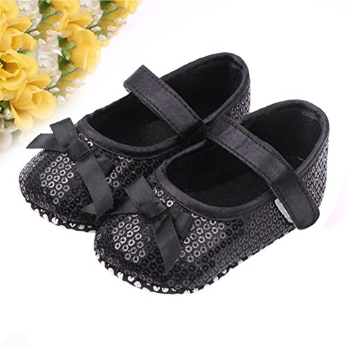 Domybest ベビーシューズ 春秋 リボン ビーズ 柔らかい 滑り止め底靴 赤ちゃん 子供 祝い お出かけ 日常生活 3色 (12cm, ブラック)