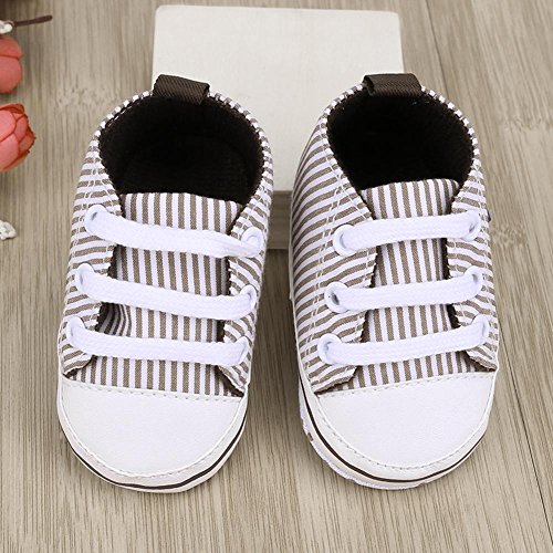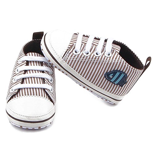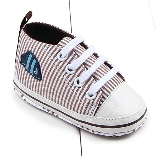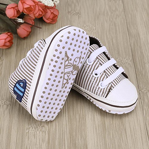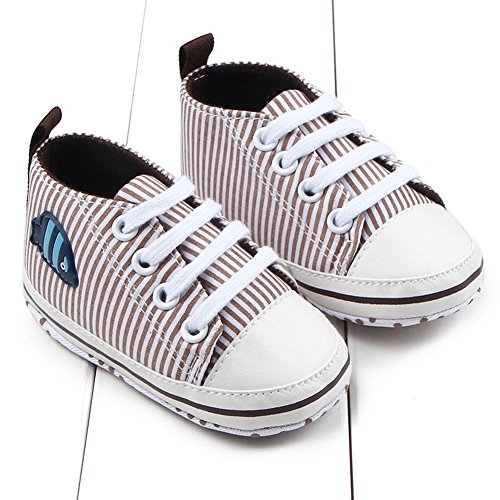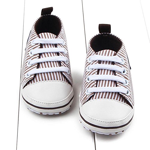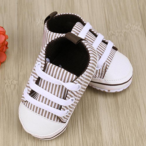 Domybest ベビーシューズ 春秋冬 キャンバス 柔らかい 11-13cm ベルト付き 滑り止め底靴 ボーダー柄 赤ちゃん 子供 祝い お出かけ 日常生活 (11cm, コーヒー色)