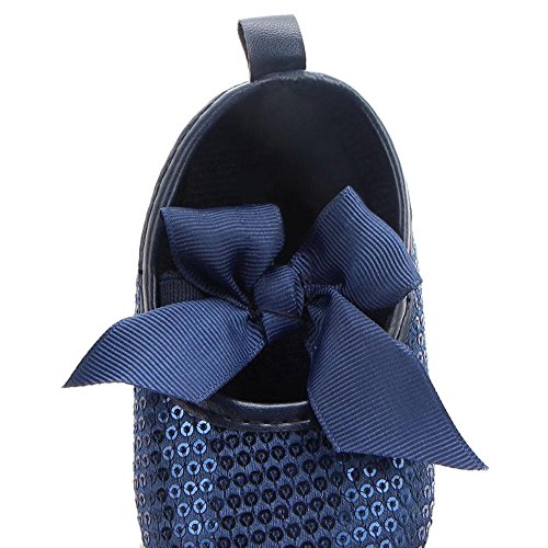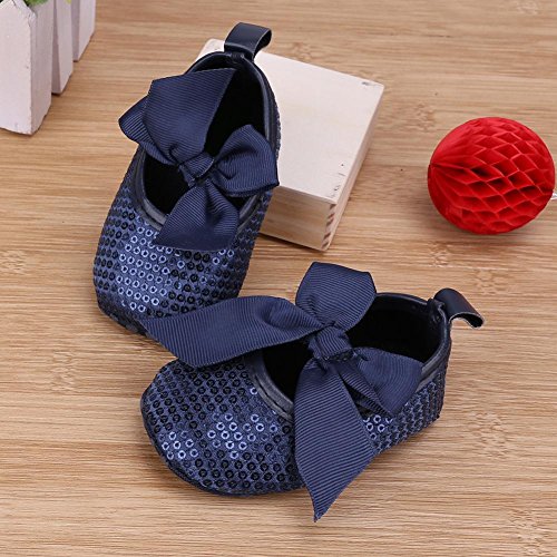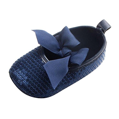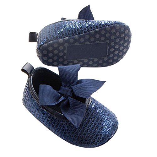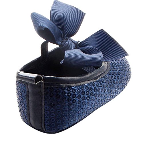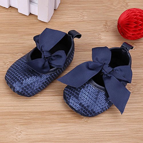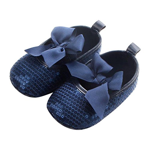 Domybest ベビーシューズ 春秋 革 リボン 柔らかい 滑り止め底靴 赤ちゃん 子供 祝い お出かけ 日常生活 3色 (13cm, ブルー)