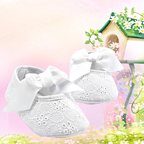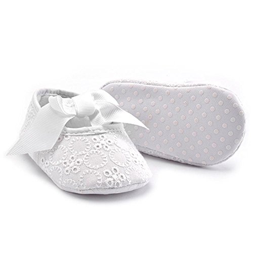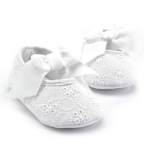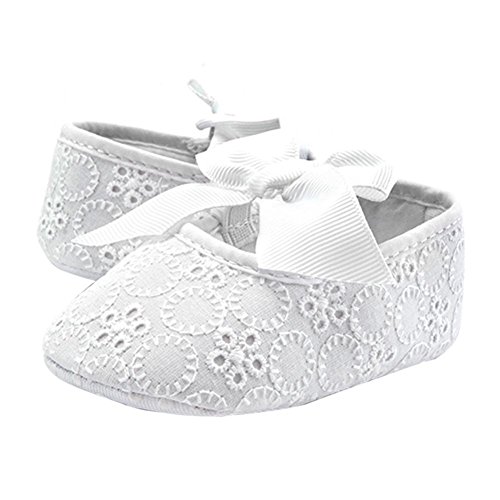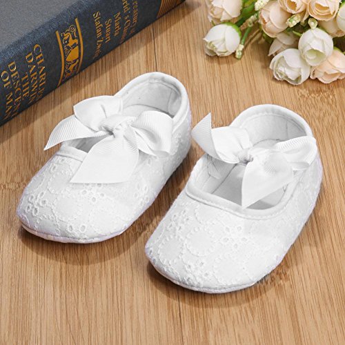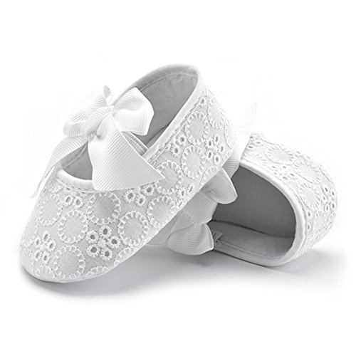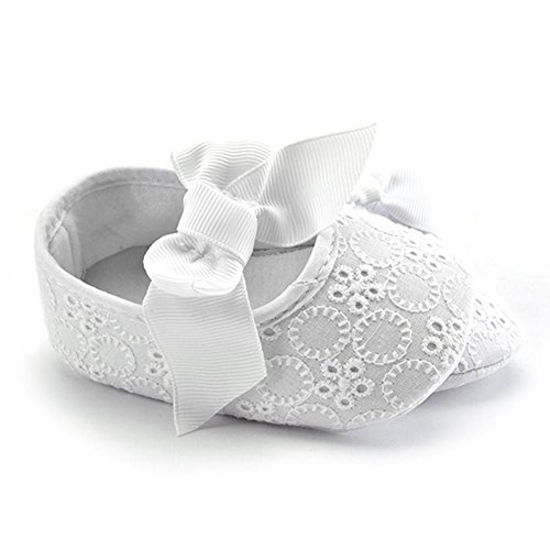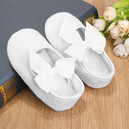 Domybest ベビーシューズ 春秋 綿 花柄 リボン 柔らかい 滑り止め底靴 赤ちゃん 子供 祝い お出かけ 日常生活 白 (12cm)