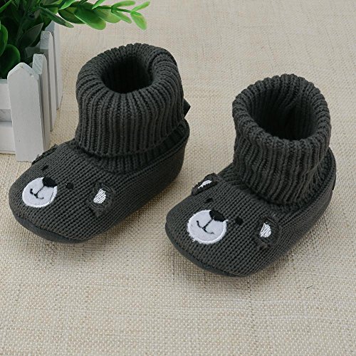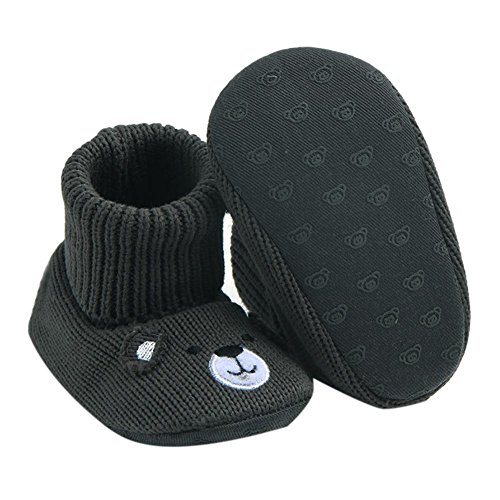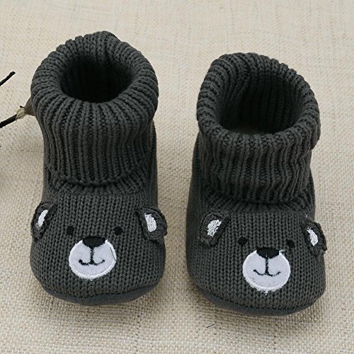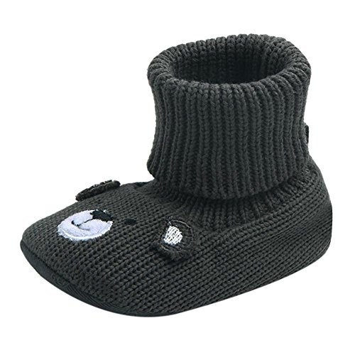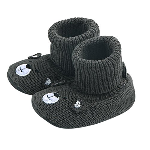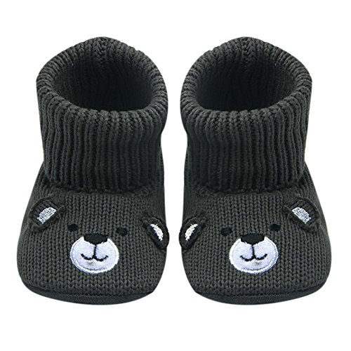 Domybest ベビーシューズ キッズシューズ 可愛い 春秋 ニット 熊 柔らかい 滑り止め底靴 赤ちゃん 子供 祝い お出かけ 日常生活 (13cm, ダークグレー)