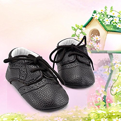 Domybest ベビーシューズ 春秋冬 レザー 11-13cm ベルト付き 柔らかい 滑り止め底靴 赤ちゃん 子供 祝い お出かけ 日常生活 (11cm, ブラック)