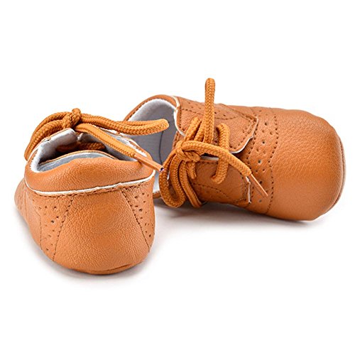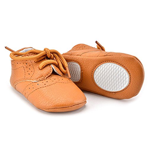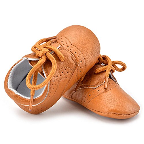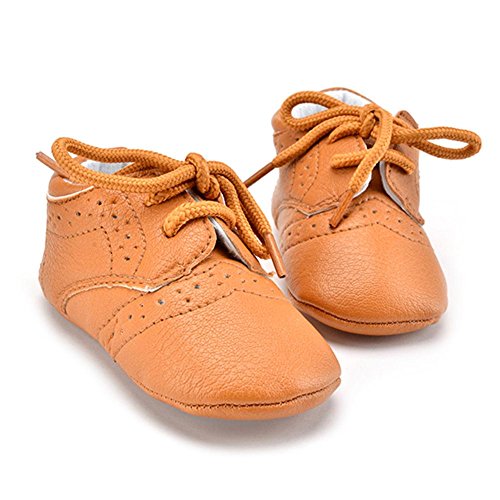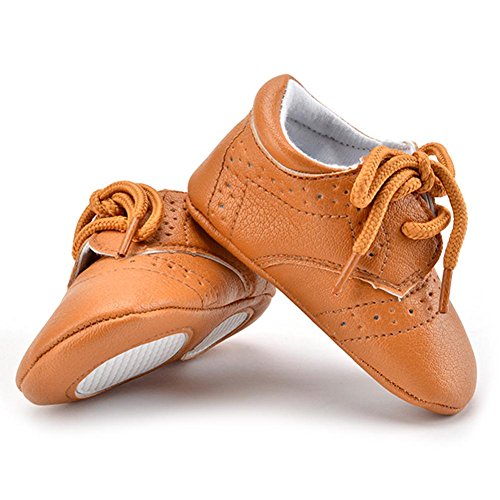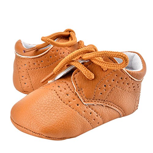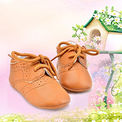 Domybest ベビーシューズ 春秋冬 レザー 11-13cm ベルト付き 柔らかい 滑り止め底靴 赤ちゃん 子供 祝い お出かけ 日常生活 (12cm, ブラウン)