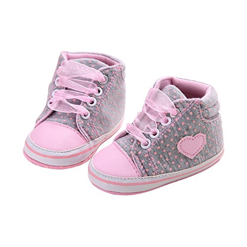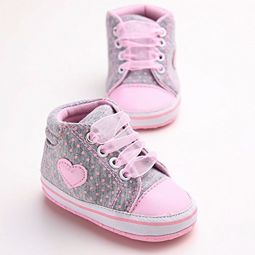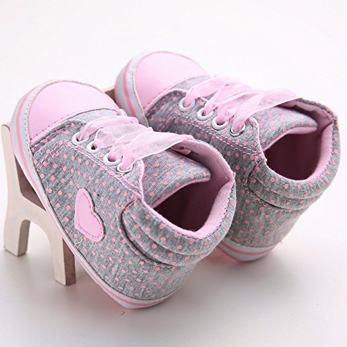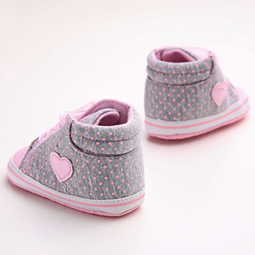 Domybest ベビーシューズ ファーストシューズ キッズ靴 スニーカー キャンバスシューズ 女の子 水玉柄 春 夏 秋 通気性よく 軽量 歩行靴 室内履き 出産祝い プレゼント (11cm(0-6ヶ月), グレー)