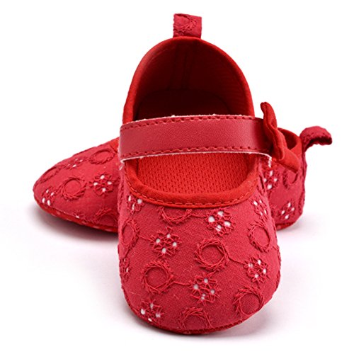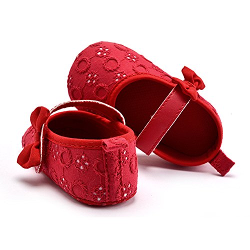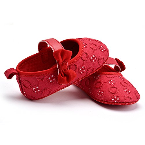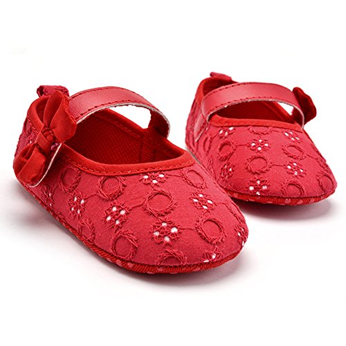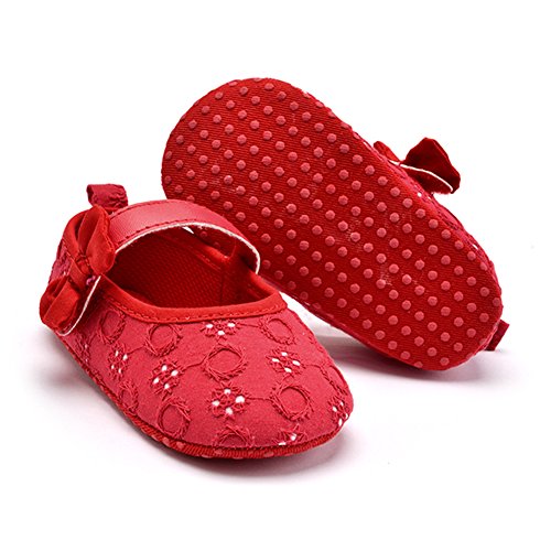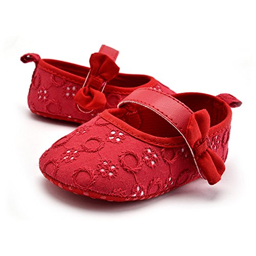 Domybest ベビーシューズ フォーマル ファーストシューズ キッズ靴 シューズ 女の子 蝶結び プリンセス風 春 夏 秋 通気性よく 軽量 可愛い 柔かい赤ちゃん歩行靴 室内履き 撮影 出産祝い 結婚式 発表会 七五三 お祝いプレゼント 3色選べる (13cm(9-12ヶ月), レッド)