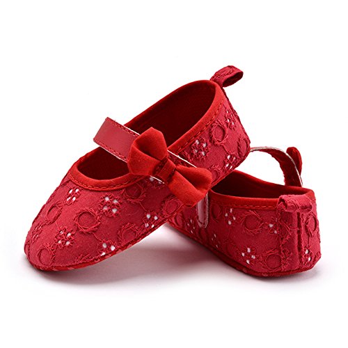 Domybest ベビーシューズ フォーマル ファーストシューズ キッズ靴 シューズ 女の子 蝶結び プリンセス風 春 夏 秋 通気性よく 軽量 可愛い 柔かい赤ちゃん歩行靴 室内履き 撮影 出産祝い 結婚式 発表会 七五三 お祝いプレゼント 3色選べる (12cm(6-9ヶ月), レッド)
