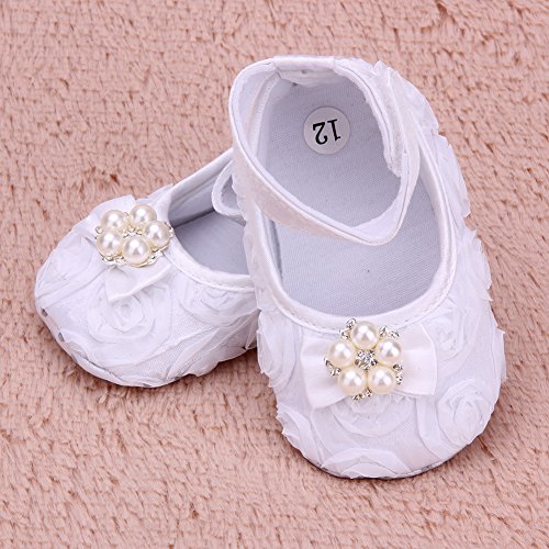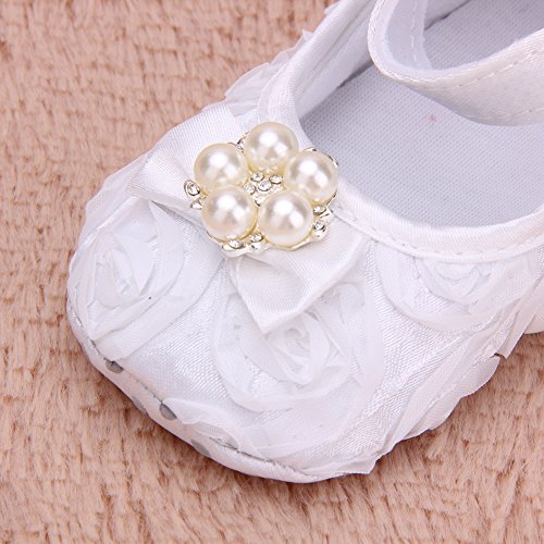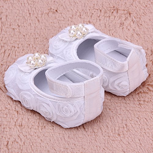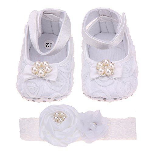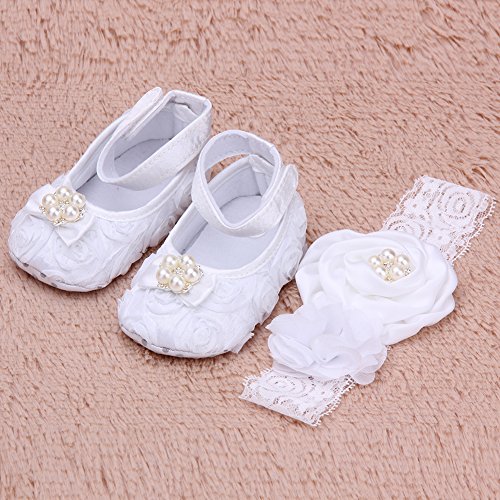Domybest ベビーシューズ フォーマル ファーストシューズ キッズ靴 シューズ+ヘアバンド2点セット 女の子 フラワー プリンセス風 春 夏 秋 赤ちゃん歩行靴 撮影 出産祝い 結婚式 発表会 七五三 お祝いプレゼント ホワイト (13cm(12-18ヶ月))