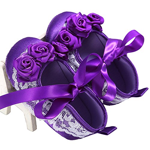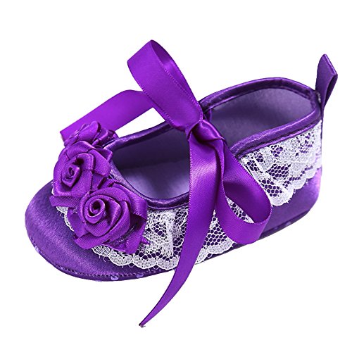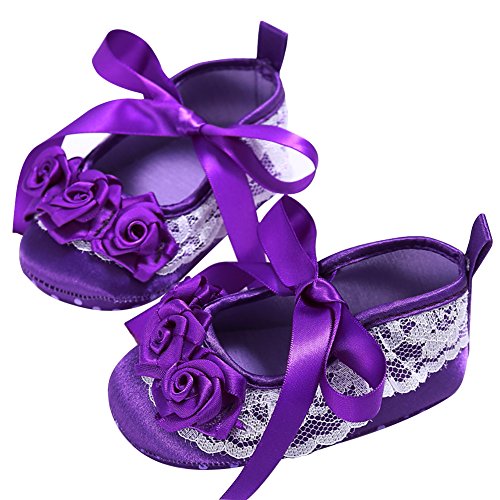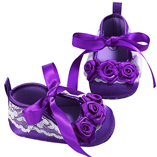 Domybest ベビーシューズ フォーマル 女の子 ファーストシューズ キッ ズ靴 シューズ リボン プリンセス風 春 夏 秋 赤ちゃん歩行靴 撮影 出産祝い 結婚式 3色選べる (13cm(12-18ヶ月), パープル)