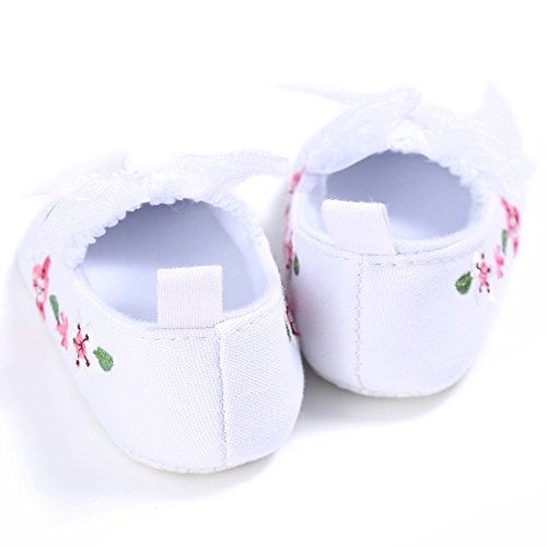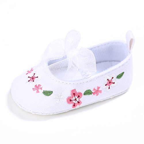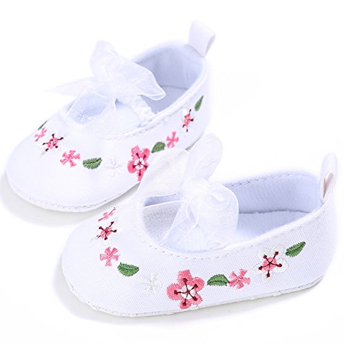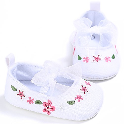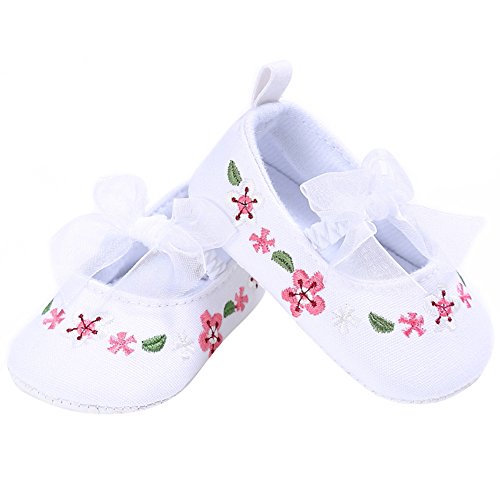 Domybest ベビーシューズ フォーマル 女の子 花柄 リボン お姫様 ファーストシューズ キッ ズ靴 刺繍 キャンバス 春 夏 秋 赤ちゃん歩行靴 撮影 出産祝い 結婚式 (13cm, ホワイト)