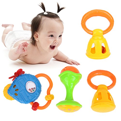Domybest 子供おもちゃ ハンドベル ガラガラ ラトル おもちゃ 知育玩具 音楽おもちゃ 楽器 カラフル 手を振る楽器玩具 聴覚 視覚刺激 ランダムカラー (B)
