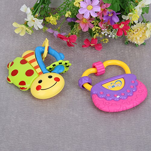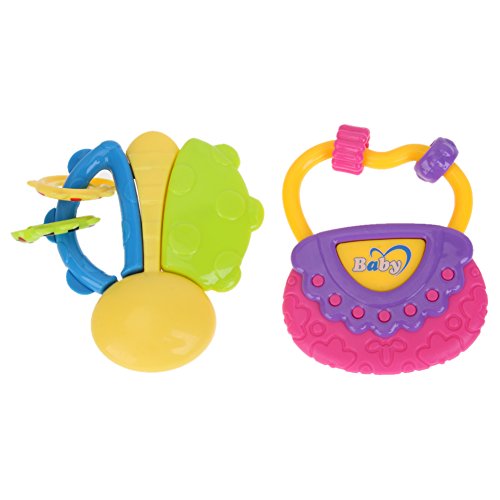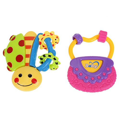 Domybest 子供おもちゃ ハンドベル ガラガラ ラトル 2点セット 音楽知育おもちゃ カラフル 手を振る楽器玩具 聴覚 視覚刺激 ランダムカラー