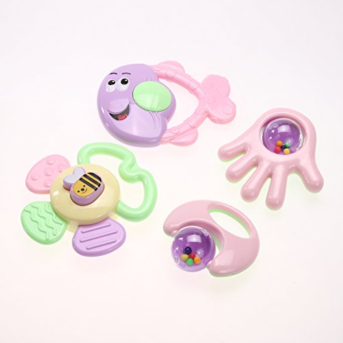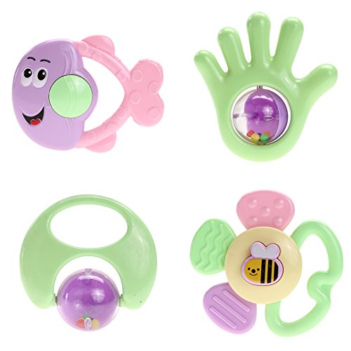 Domybest 子供おもちゃ ガラガラ ハンドベル ラトル 4点セット 知育 音楽おもちゃ カラフル 手を振る楽器玩具 聴覚 視覚刺激 ランダムカラー