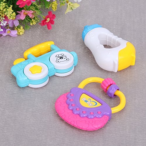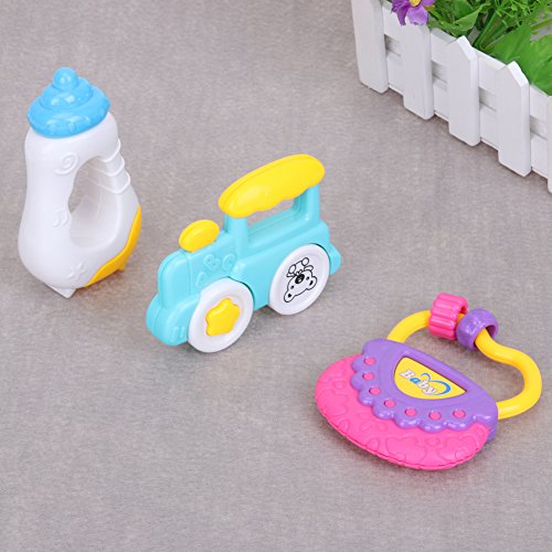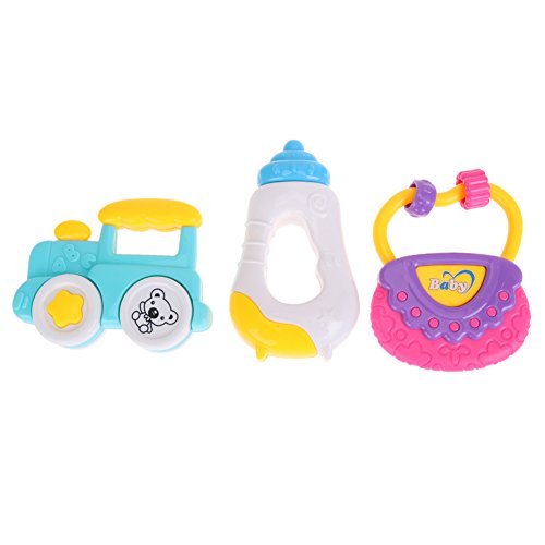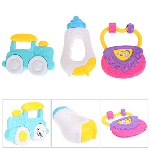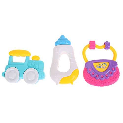Domybest 子供おもちゃ ガラガラ ハンドベル ラトル 3点セット 知育 音楽おもちゃ カラフル 手を振る楽器玩具 聴覚 視覚刺激 ランダムカラー