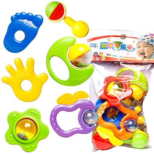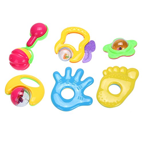 Domybest 子供おもちゃ ハンドベル ガラガラ ラトル 6点セット おもちゃ 知育玩具 音楽おもちゃ 楽器 カラフル 手を振る楽器玩具 聴覚 視覚刺激 ランダムカラー (セットA)