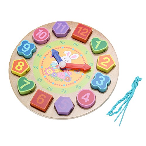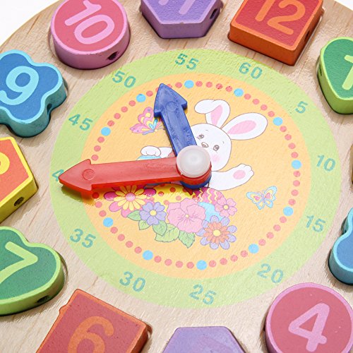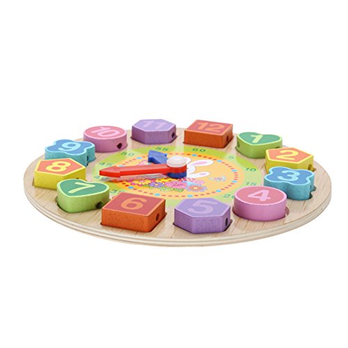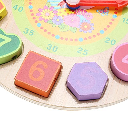 Domybest クロック 木のおもちゃ キッズ 幼児 子供 積み木 はめ込み 形合わせ 幾何 パズル 時計の勉強 ウッドクロック 知育玩具 (B)
