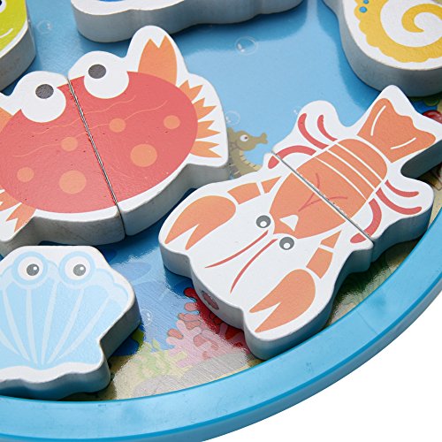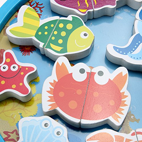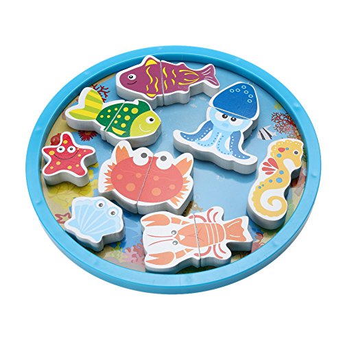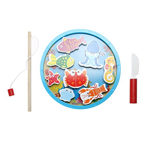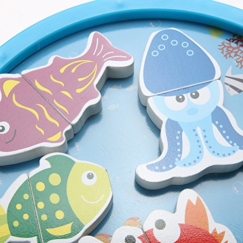 Domybest 子供おもちゃ 2-in-1 さかなつり さかなカット 木製 魚釣りゲーム カットゲーム フィッシングゲーム 釣り遊び マグネット 木のおもちゃ パズル 知育玩具 親子