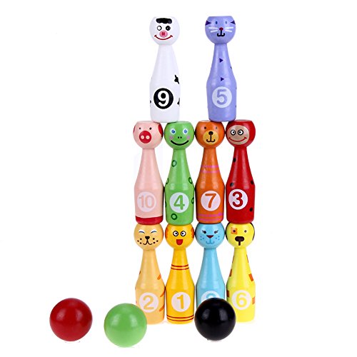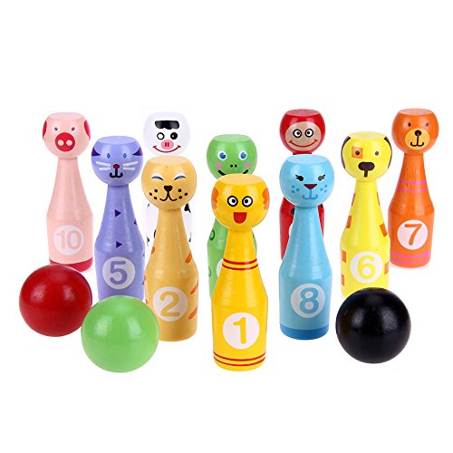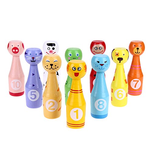 Domybest ボウリングセット ボウリングボール おもちゃ ゲーム アニマルボーリング 可愛い 動物型 スポーツトイ 木のおもちゃ キッズ 子供 知育おもちゃ プレゼント