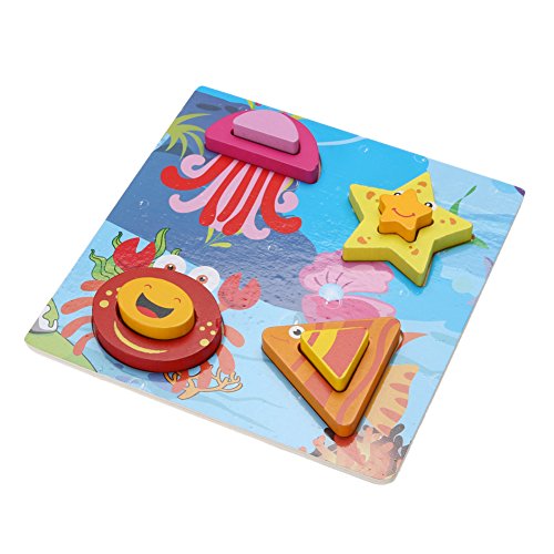 Domybest 木のおもちゃ キッズ 幼児 子供 積み木 はめ込み 形合わせ 幾何 パズル 幼児教育 知育玩具 6種類選べる (B)
