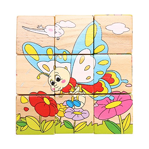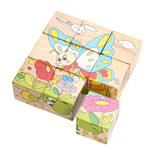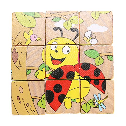 Domybest立体パズル 木製 木のおもちゃ キューブ ブロック 異なる六面 幼児 子供 キッズ 知的玩具 昆虫 果物 野菜 3種類選べる (昆虫)