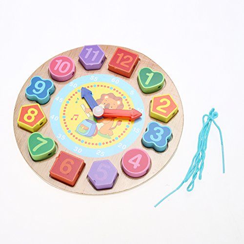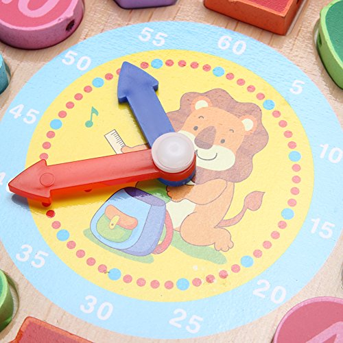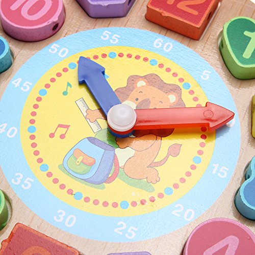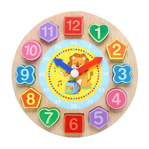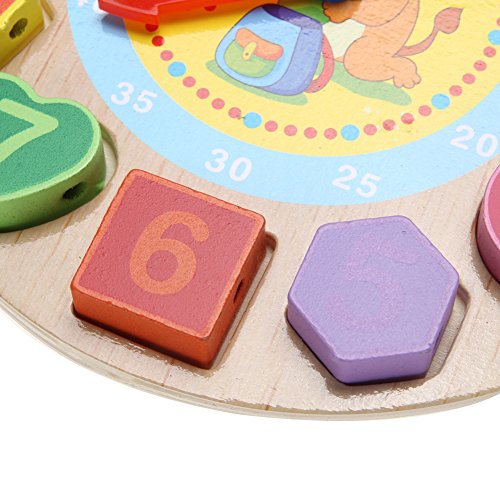 Domybest クロック 木のおもちゃ キッズ 幼児 子供 積み木 はめ込み 形合わせ 幾何 パズル 時計の勉強 ウッドクロック 知育玩具 (D)