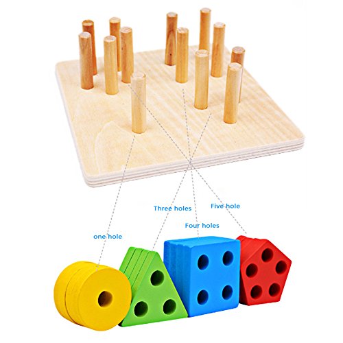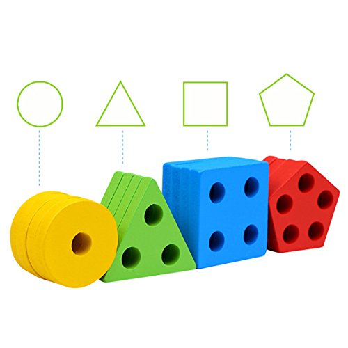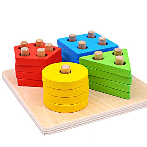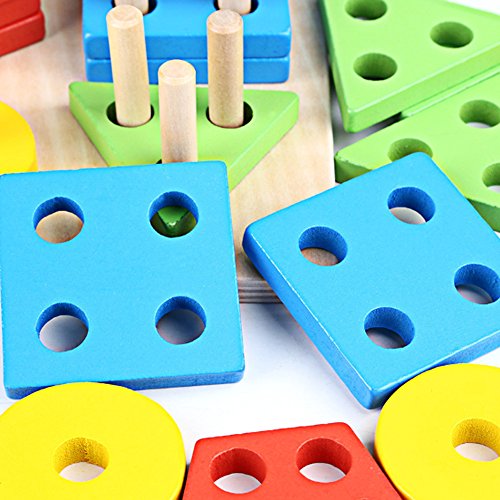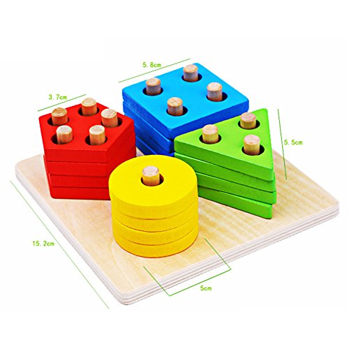 Domybest パズル 木製 木のおもちゃ 幾何パズル 木製ブロック 棒さし 型はめ 形合わせ 幾何学認 積み木 カラフル 知的玩具 児童 キッズ 知育玩具