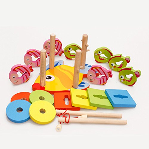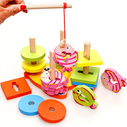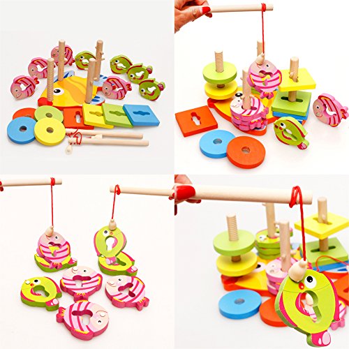 Domybest さかなつり 木製 魚釣りゲーム フィッシングゲーム 釣り遊び マグネット 木のおもちゃ パズル 知育玩具 親子
