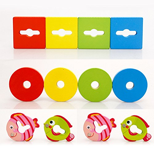 - 鮮やかな色の幾何学形のパネルと魚の形のパズルを組み合わせて、それぞれ積み重ねて遊びます。 (説明書はございません。予めご了承ください。)