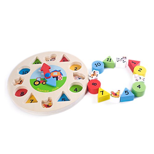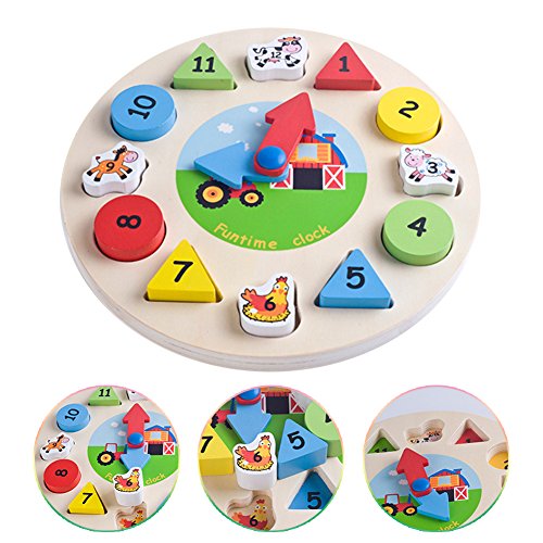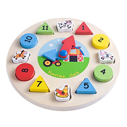 Domybest クロック 木のおもちゃ キッズ 幼児 子供 積み木 はめ込み 形合わせ 幾何 パズル 時計の勉強 ウッドクロック 知育玩具