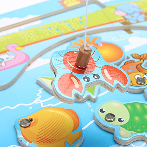 Domybest 子供おもちゃ さかなつり 木製 魚釣りゲーム フィッシングゲーム 釣り遊び マグネット 木のおもちゃ パズル 知育玩具 親子
