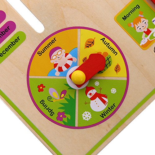 Domybest 認知カレンダー クロック 木のおもちゃ 多機能 キッズ 幼児 子供 パズル 時計の勉強 英語勉強 ウッドクロック 知育玩具