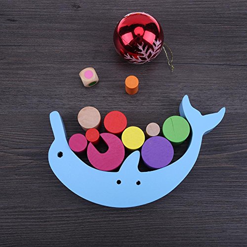 Domybest 28pcs 積み木 セット キューブ 子供おもちゃ 木のおもちゃ 知育玩具 木製 玩具 3歳以上 イルカの形 カラフル 視覚刺激 お祝い ギフト 誕生日 記念日