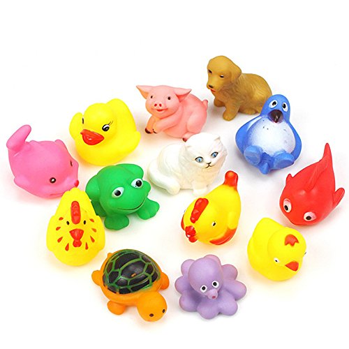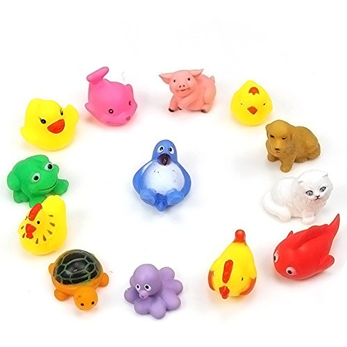Domybest子供 お風呂用おもちゃ 水遊び バストイ ゴム製 動物型 押すと声が出す 12個セット