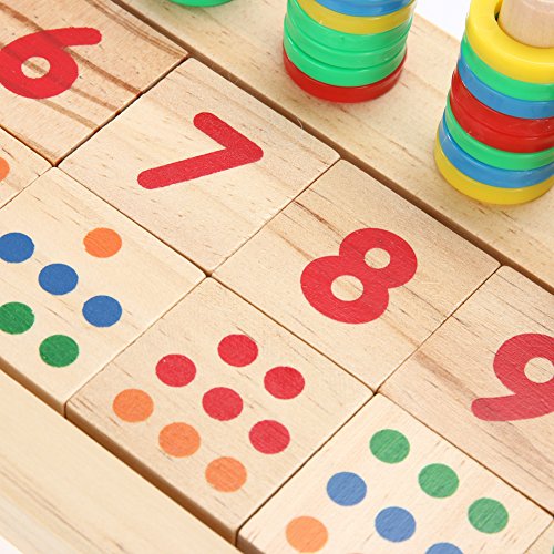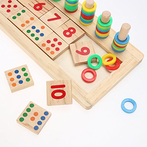 デジタル啓発のおもちゃは、赤ちゃんが数を学ぶように、手のように、別の木の長さ、長さの概念に、色の点の数に応じて、カラー円の対応する数の数に応じて、 加算演算と減算演算。 非常に科学的な数学啓発教材で、幼稚園の幼稚園に適しています。 高品質のゴム製の木製のおもちゃ、バリなしで滑らかに研磨され、安全な塗料は臭いがないので、両親が保証します。