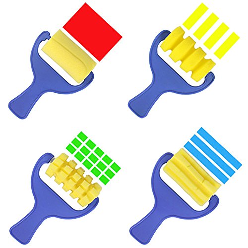 Domybestスポンジブラシ ピグメントホイールセット4セット 子供の落書きの印章 DIY早期教育芸術資料 手と脳の能力を持つ子供を育てる 想像力を最大限発揮する 3歳以上の赤ちゃんに適し