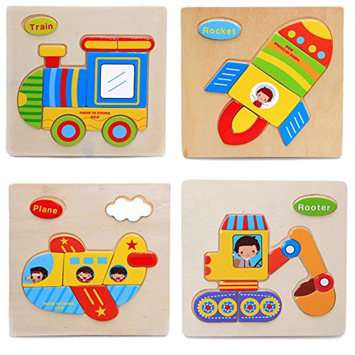 Domybest 子供おもちゃ パズル 赤ちゃん 木製 素敵な交通機関のモデリング 知育玩具 認識力 児童 キッズ 幼児 カラフル 4タイプはランダム配信