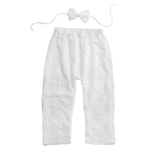 Domybestベビー用 ロングパンツ+ヘアバンド レース 二点セット  赤ちゃん 新生児 出産祝い 百日記念 写真 撮影 寝相アート 着ぐるみ