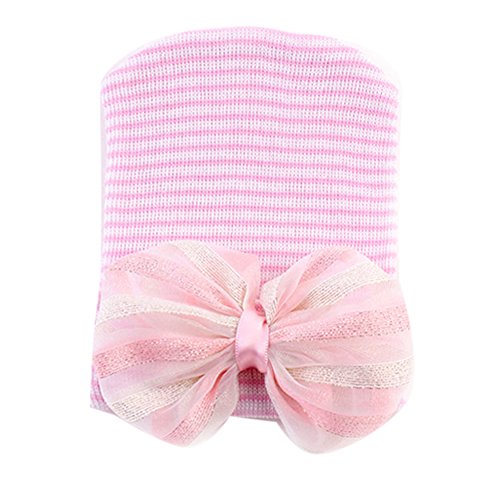 Domybestベビー用帽子 ニット リボン 秋 寒さ対策 冷房 可愛い 衣装 赤ちゃん 新生児 出産祝い 百日記念 4色 (C)