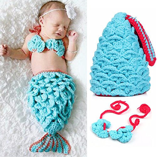Domybest ベビー服 着ぐるみ 寝相アート 男の子 女の子 0-1歳 ニット スカイブルー マーメイドモデリング プリンセス風 かわいい お子様の誕生日 お祝いギフト 出産祝い 記念日