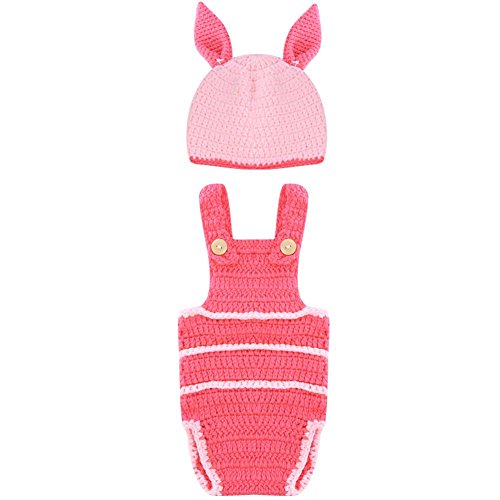 Domybest ベビー服 着ぐるみ コスチューム 服 ニット ビブ 0-4ヶ月 バニーの形 男の子 女の子 ピンク 柔らかく快適 かわいい 写真道具 出産祝い 百日記念 ギフト 誕生日