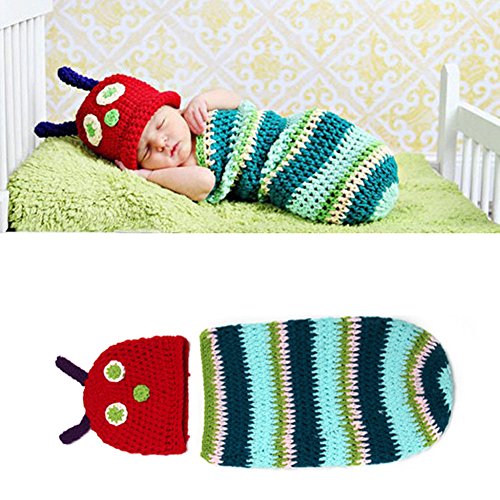 Domybest ベビー服 着ぐるみ コスチューム 服 写真道具 ニット 0-4ヶ月 キャタピラーの形 男の子 女の子 かわいい 柔らかく快適 出産祝い 百日記念 ギフト 誕生日
