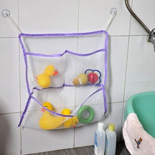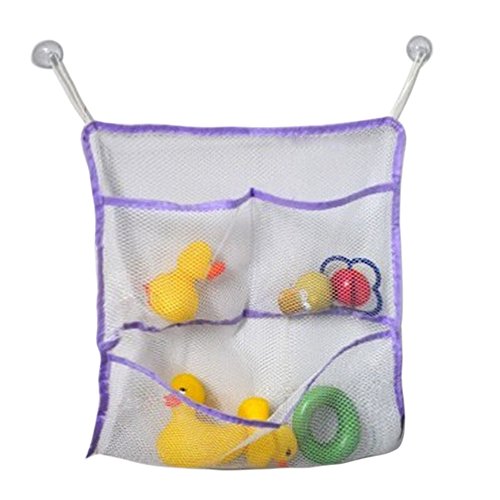 Domybest おもちゃ収納袋 お風呂収納袋 メッシュバッグ キッズ 子供 おもちゃ入れ 収納ポケット 片付けネット ポケット付き 吸盤式 多用途 学習収納 子供部屋収納 3色選択可能 (紫)