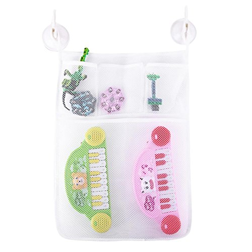 Domybest おもちゃ収納袋 お風呂収納袋 ホワイト メッシュバッグ 掛け式 キッズ 子供 おもちゃ入れ 収納ポケット 片付けネット 吸盤式 多用途 子供部屋 学習収納